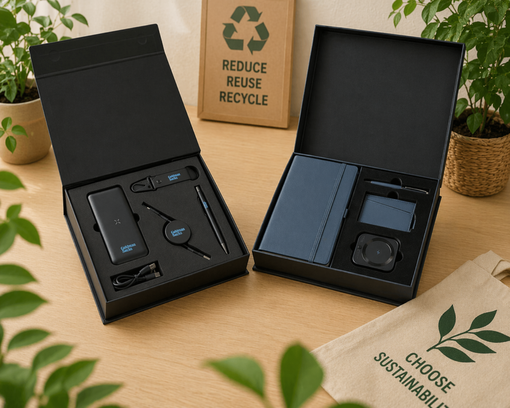 Premium gift sets combine elegance with sustainability, making them ideal, environmentally friendly corporate gifts. These curated bundles often include eco-friendly gifts like drinkware, stationery, and tech accessories in premium packaging. Perfect for eco-friendly corporate gifts Dubai, they deliver a memorable unboxing experience while reinforcing your brand’s commitment to quality and sustainability.