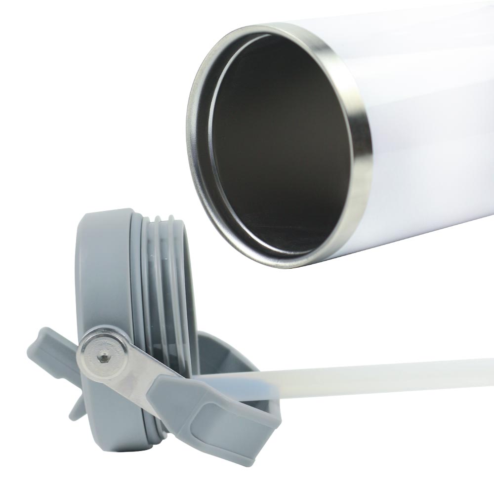 Tumbler in stainless steel double-wall vacuum insulated tumbler with flip-straw Lid and carry handle. The customized vacuum-insulated tumbler is ideal for keeping your beverage hot for hours. These tumblers are durable and made with premium quality, stainless steel material. They also come with a double wall design to maintain the freshness and taste of your drink.