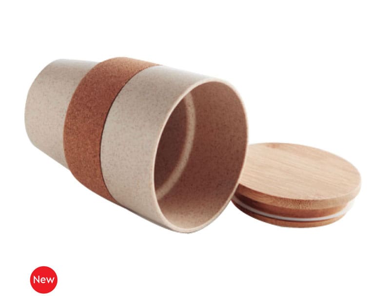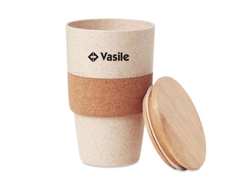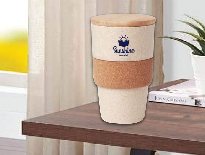 The Coffee mug crafted with wheat straw fibers, bamboo lid