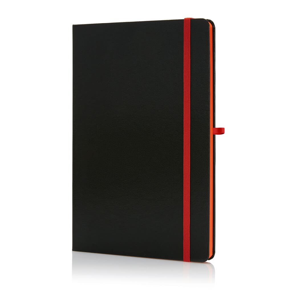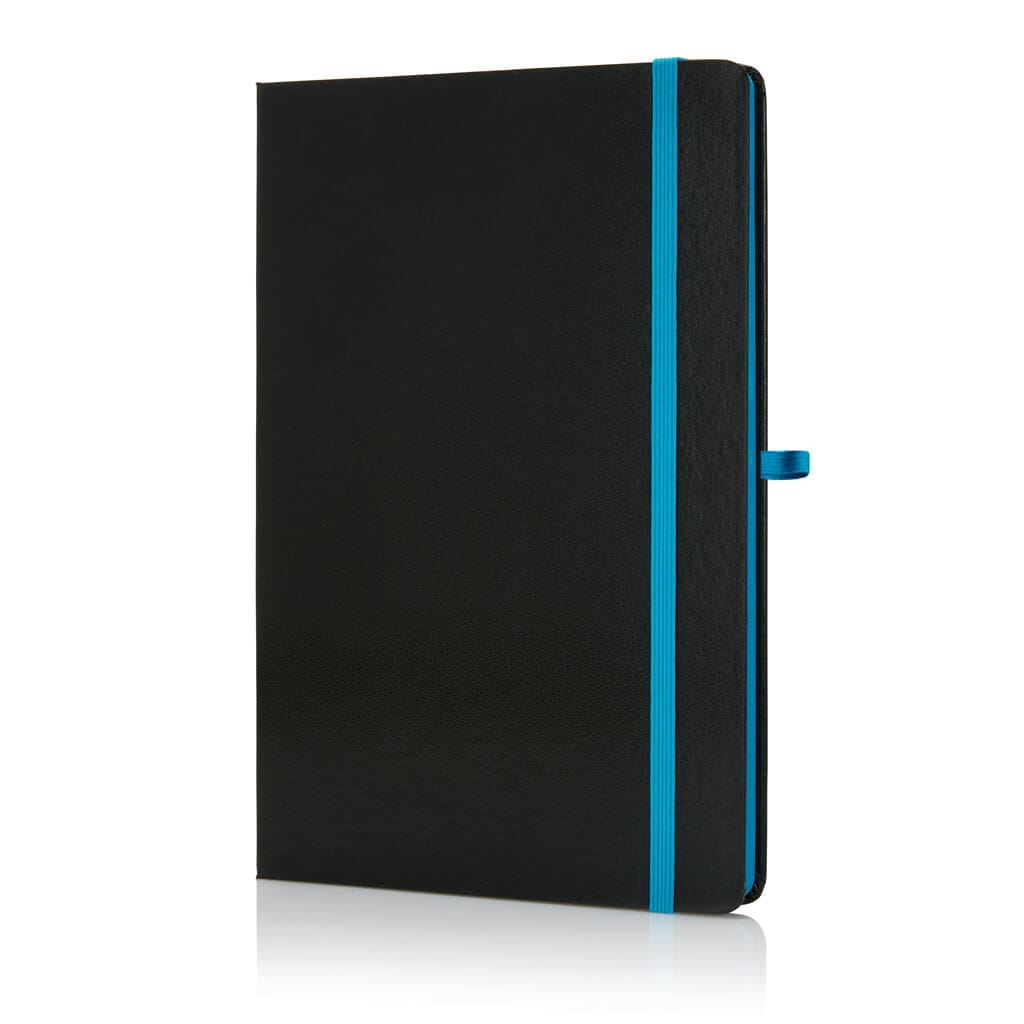Hardcover A5 PVC notebook with matching coloured 3mm elastic closure, 192 ruled pages, 70gsm. Every notebook is thread bound and comes with rounded corners, a bookmark, a pen loop, an elastic closure and an expandable inner pocket. Packed in a gift box.