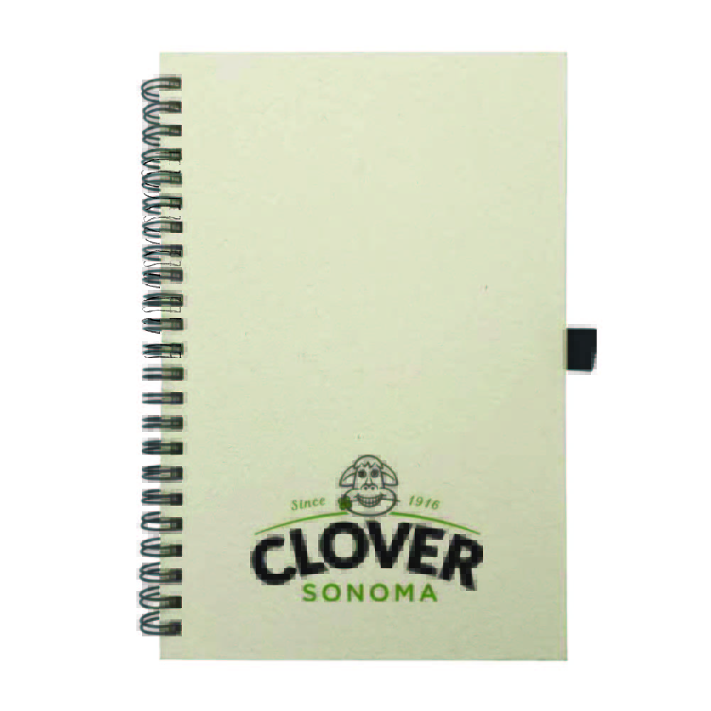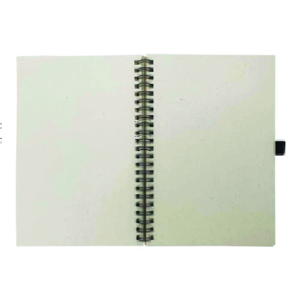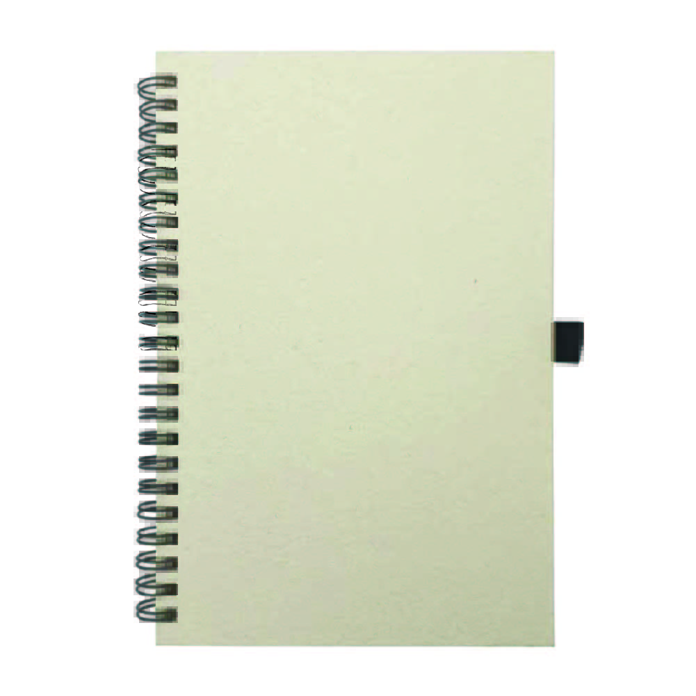 A5 spiral notebooks with a pen loop and information details inside the front cover, constructed from recycled milk carton material with a 120g hardcover and 70 sheets of 80g inner plain pages. A green product, our personalized Milk Carton A5 Size Spiral Notebook. is made with up to 70% recycled milk cartons and filled with lined sheets weighing 70?80 g/m2. These bespoke off-white notebooks are a wise and moral decision for your company.
