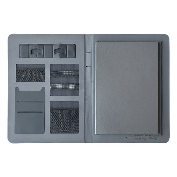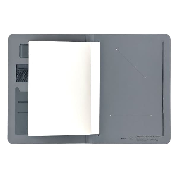 A4 Portfolio Multifunction High Quality Aditional pocket for documents, Pen Loop Input :DC 5V-2.1A, Output: DC 5V-2.1A Wireless charge 15w, Power bank 8000mah Product Size : 24.8x 18 x 2 CM