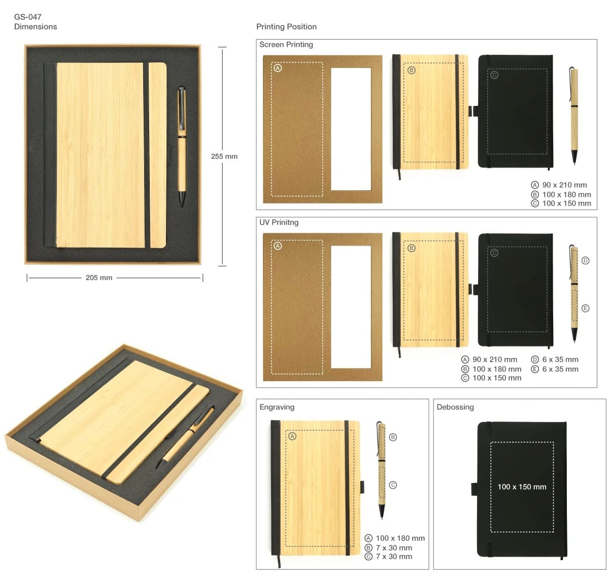 SEO Keywords: Bamboo notebook set, eco-friendly gift, sustainable promotional product, corporate social responsibility, brand visibility, unique promotional gift.