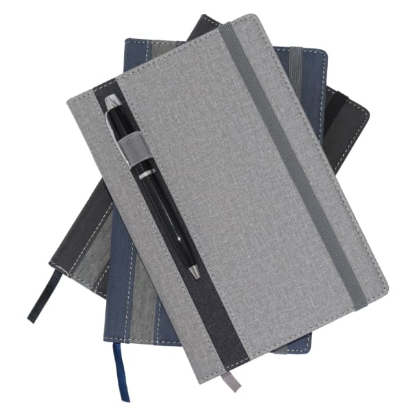 NOTE BOOK Fabric look high quality leather material, Business assistant with pen holder and elastic.