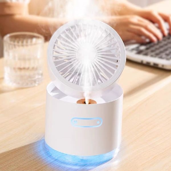FAN HUMIDIFIER Specifications and Parameters Input:DC5V/880mA Spray amount:30-50mL/H, Battery Capacity:2000mAh, Speed and power of a moto:,