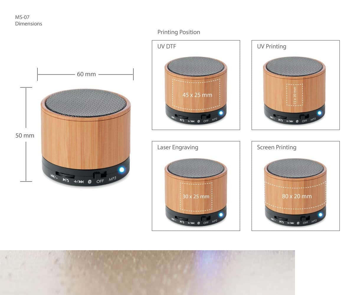 A 450 mAh lithium-ion rechargeable battery powers our bamboo speaker and offers long battery life. It provides an astonishing three hours of nonstop gaming. The smooth bamboo framework of this environmentally friendly speaker may be used to engrave your business’s name or brand for marketing purposes. Your brand will become more well-known and appealing to consumers as a result. Additionally, this eco-friendly gadget is ideal as a present for your loved ones.